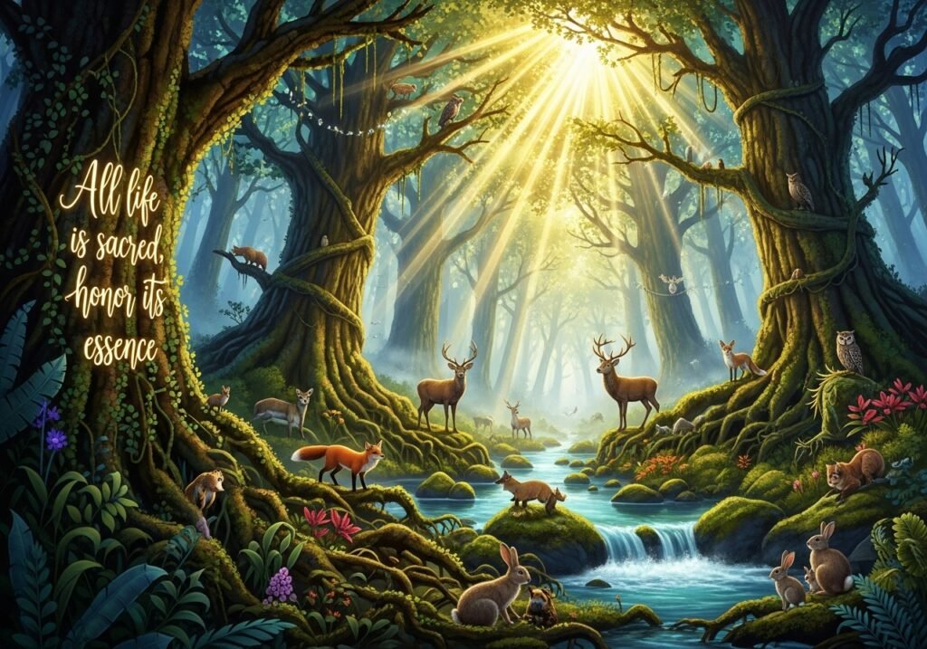 Everything in existence is interconnected. Spiritual ethics teaches us that every form of life—human beings, animals, plants, even the earth itself—carries sacredness. To live ethically is to act with reverence for this interconnected web.