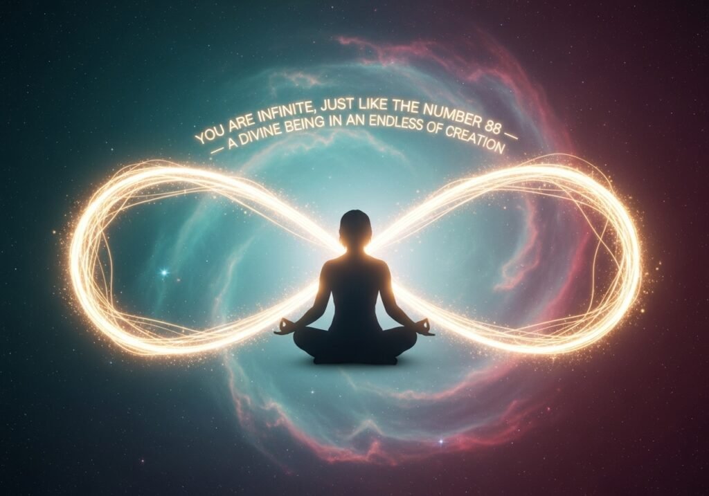 Beyond prosperity and karma, the double infinity of 88 represents timelessness and spiritual evolution. It reminds us that the soul’s journey never ends it’s a constant cycle of growth, learning, and awakening. Each phase of your life is both an ending and a beginning, like two infinite loops flowing into one another. Seeing 88 could mean you’re approaching a spiritual rebirth a time to release the old and make space for higher consciousness. Meditating on 88 can also help you visualize your connection to divine energy a reminder that you are infinite, eternal, and divinely guided.