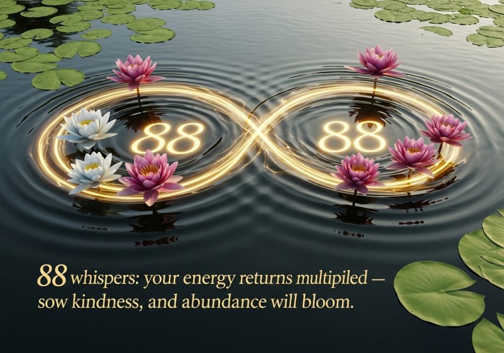 The spiritual meaning of 88 is strongly linked to manifestation. This number often appears when you’re close to achieving a major breakthrough especially one that connects financial prosperity with spiritual growth. The universe is reminding you that abundance is not purely material; it’s an energetic frequency. When you think abundantly, act with purpose, and align with gratitude, you open the door for endless blessings. Key message: