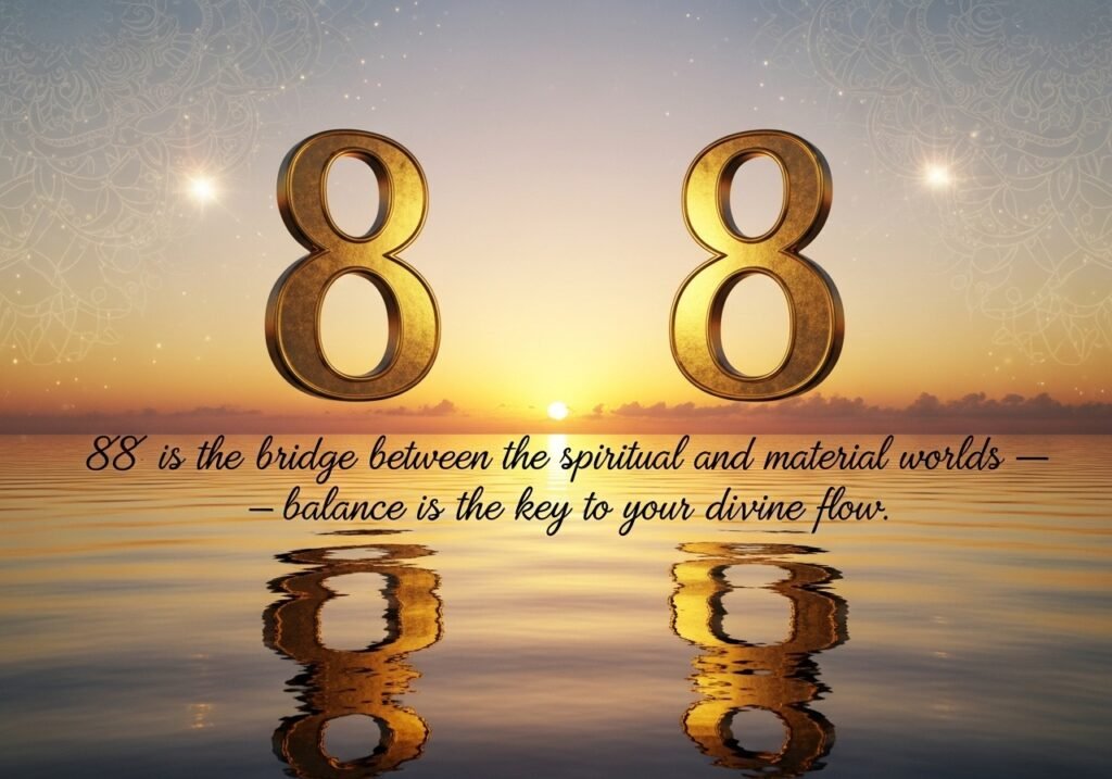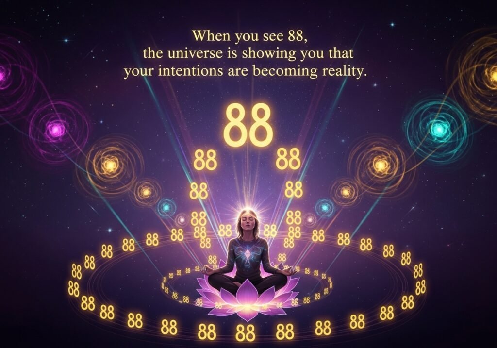 Spiritually, the universe uses 88 as a signal that your energy and intentions are aligning with your soul’s purpose, and that material abundance will follow spiritual alignment not the other way around.